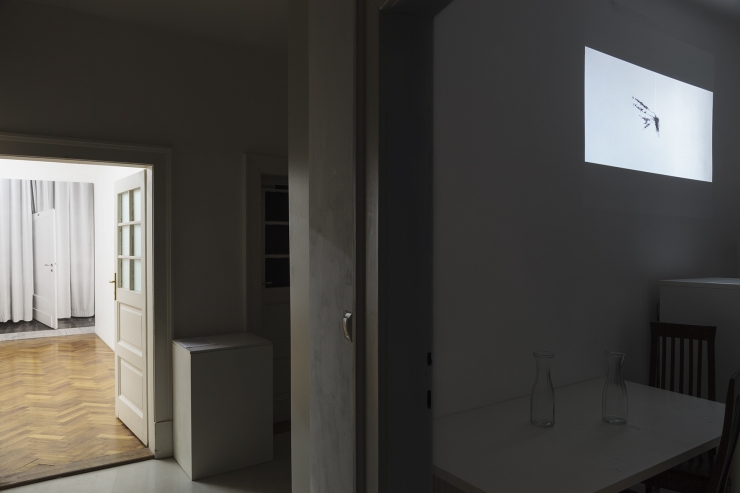 Ján Kekeli: Little Scene, Curator: Mária Janušová, Opening: Thursday, April 12, 2018, Duration: 15.05.2018 The exhibition titled Little Scene presents the selection of the latest works of Ján Kekeli, Slovak photographer of younger generation. Although Kekeli is mostly known as representative of a landscape photography when he took attention with his series The Pictures of Landscape (2012), the exhibition in Phoinix Gallery shows his another, different position. The exhibition project among other things also strives for breaking some stereotyped of author in Slovak context and for showing severel aspects of his work. In the presented works Kekeli focuses on capturing visual of everyday things, various moments and compositional situations. He notices commonly overlooked scenes from everyday reality in which he finds strange aesthetics and some poetic aspect. He concentrates on visual game of non-figurative elements, still life, household objects. The scenes are limitated to the interior environment thanks to what photographs have a strong intimate atmosphere. By reduction of captured elements and simple but strategic composition of artworks Kekeli shows his technical skills and accuracy. Using classic analog technique and large-scale negatives allowed to excel every detail and also it provided sensitive and melancholic aspects of photographs. In the exhibited works author formally follows his older series The life consists of subtle touches of loneliness (2010-2012) but in contrast to his previous works, the narrative component has disappered in his later photograps. Kekeli fully concentrates on visual game of captured moment. The scenes are not completely based on reality, author also played with staging and directing of the scenes so they looked as he wanted to look like. Although his photographs have lost stories, there is a kind of internal restlessness, tension, as if they showed the life of things befory someting happened or immediately after that. They contain hidden symbolism of personal associations of author who personally felt like captured things. The concentration to capturing just one element in space as if represented also Kekeli´s loneliness and solitude. The excessive consistency of photographed situations increases their artificial, absurd expression. The exhibited cycle characterizes some inner silence, excitement or uncertainty. The photographs use the signs of Lynch's aesthetics and the Freudian language, with Kekeli asking questions that he does not know how to answers. If his previous work have stood aon the border of documentary and visual photography, the exhibited series definitively demonstrates Kekeli's marked shift toward a purer, visual photography approach. Ján Kekeli (*1984, Kežmarok, Slovakia) graduated at the Academy of Fine Arts and Design in Bratislava where he studied between 2006 and 2012 at Studio of Photography led by Filip Vančo. He later started PhD. studies there at the studio of professor Ľubo Stacho but his study is currently interrupted. His works has been presented at several solo exhibitions in Slovakia and abroad, for example City Gallery, Třinec, CZ, 2017; Nevan Contempo, Prague, CZ, 2016; Photoport, Bratislava, SK, 2014; Slovak Institute, Warsaw, PL, 2013. He has participated at many important group shows, for example Slovak Institute, Berlin, DE, 2016; Virka Gallery, Helsinki, F, 2016; Palazzo Vittoriano, Rome, IT, 2015; Slovak National Gallery, Bratislava, SK, 2014. Kekeli was awarded by NOVUM Foundation (2016), he won competition Photo of the year (2012); he also was a finalist of ESSL ArtAward (2013) and StartpointPrize (2012). His artworks can be found in private collections and in the collection of Slovak National Gallery. Kekeli lives and works in Bratislava, Slovakia. Text by Mária Janušová